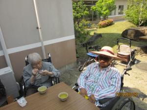 今週は、いつもと違って、庭に出ておやつを食べて頂いています。