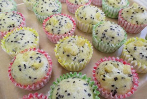 本日のおやつは手作りおやつ「黒ごまとさつまいもの蒸しパン」でした。