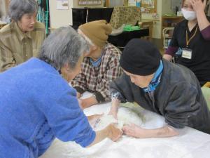 連携プレイで、ちぎって、丸めて、立派な鏡餅ができました。