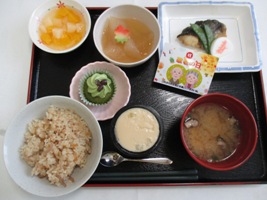 今日のお昼ご飯は「松茸ごはん、ホッケの塩焼き、冬瓜のくず煮、茶碗蒸し、デザート、豆腐のお味噌汁」でお祝いしました。