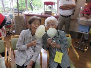 綿菓子は職員が悪戦苦闘しながら、ふんわりと美味しそうに出来たかな?ポップコーンもいいかにおいがホールいっぱいに広がり、美味しくいただきました。