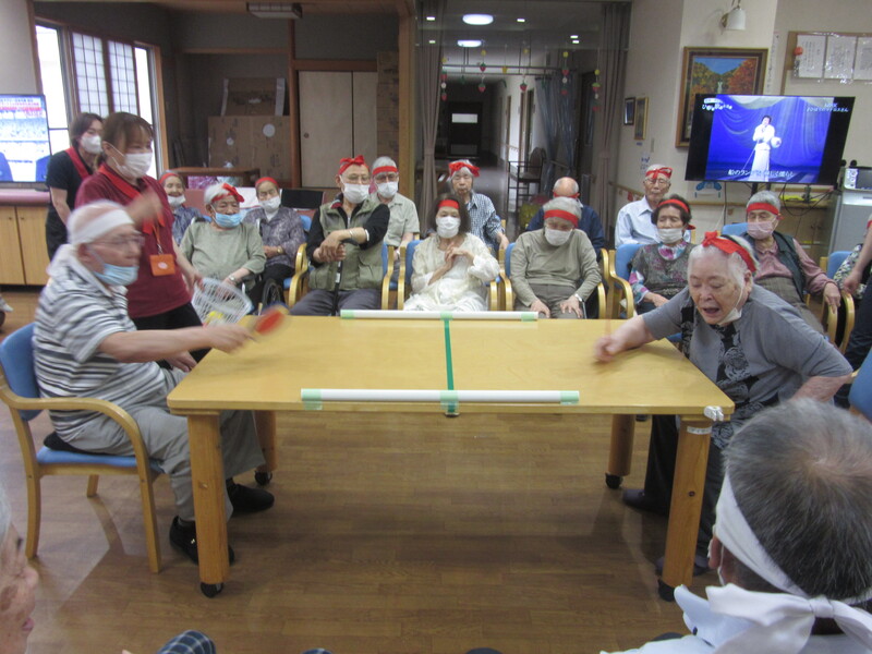 本日より3日間の予定でスポーツ大会を行っています。チーム対抗でのゲームを行いました。皆さん夢中になり楽しまれとても良い表情をされていました。ラボットのあんずちゃんも応援隊として参加し場を盛り上げていました!