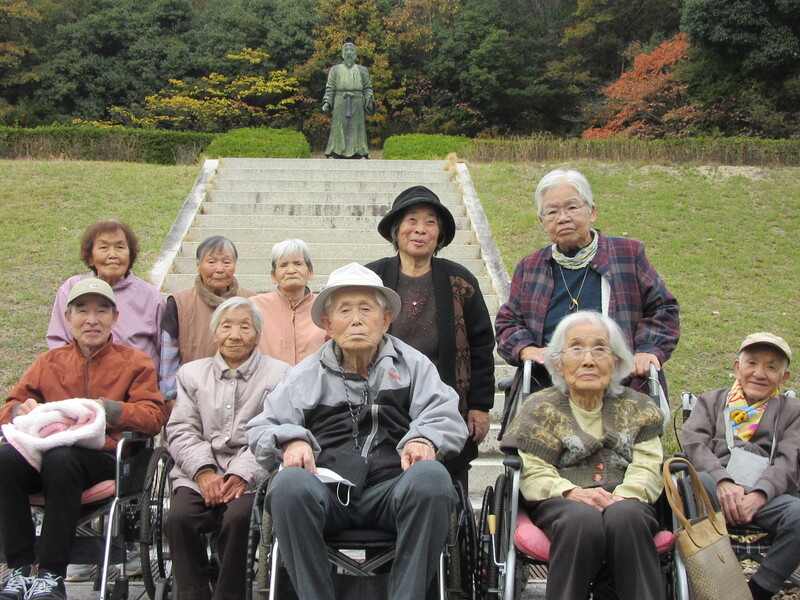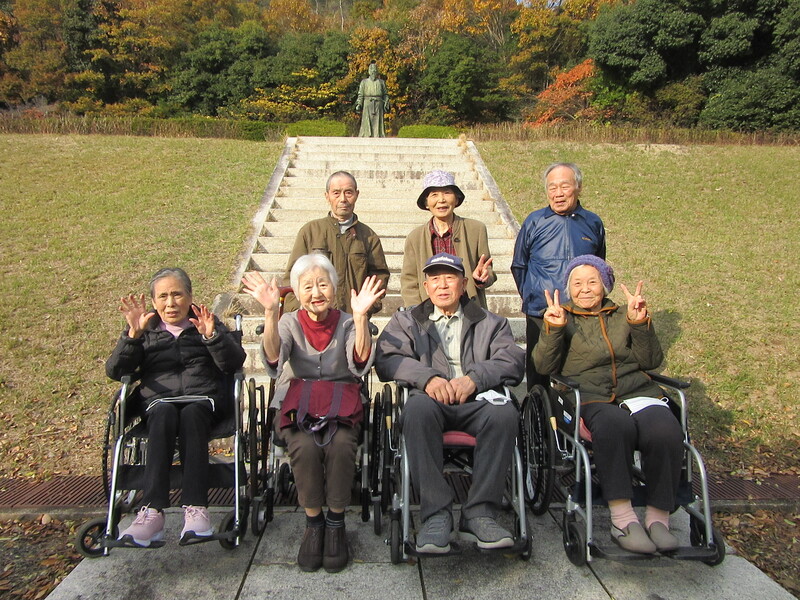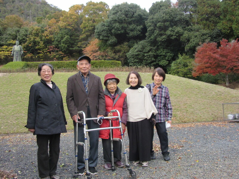 紅葉の季節となり、今回は矢掛の吉備真備公園へ出掛けてきました。今回は暖かかったためか、少し早かったようで、残念ながら紅葉が見れないグループもありました。ですが、外の空気を吸いながらお茶を飲み、気分転換ができ楽しまれていました。