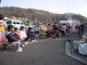 勢いよく燃える火に、興味深々の子どもたちです♪