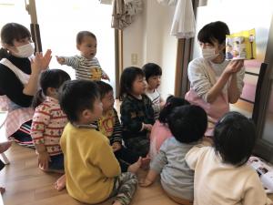 ひなまつりの歌を歌ったり、紙コップシアターを見たり、