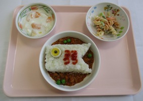 ごはんが鯉のぼりになったキーマーカレーです。
