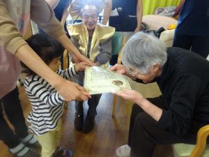 感謝状を渡したら、喜んでくれました。