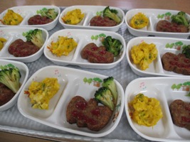 厨房ではかぼちゃのハンバーグにいろんな顔を書いたよ!