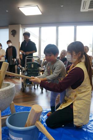 重たい杵を持ち上げて、力いっぱいお餅をつくことができましたよ!