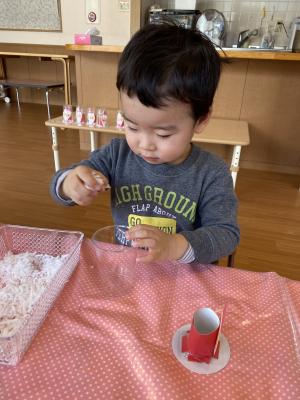 サンタクロースの目と口を描いて、可愛いスノードームができました!