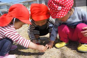 テントウムシを見つけた子どもたちは