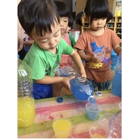 子ども達は、毎日水遊びを楽しんでいます。最初は、水がちょっぴり苦手だったお友だちも、今ではバッシャバッシャとダイナミックに遊んでいます。