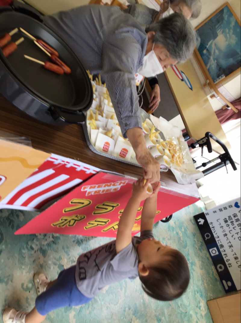 ケアハウスのおじいちゃんおばあちゃんと一緒にお祭りに参加しました。