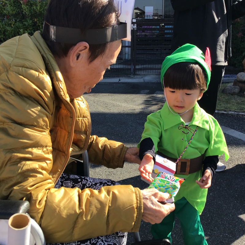 今日は可愛く仮装してセレーノ総社の関連施設をまわり、おじいちゃん、おばあちゃん達からお菓子をもらいました。「かわいいねぇ♡」「はい、どうぞ。」などやさしく声を掛けてもらったり、タッチをしたりと温かなかかわりにほのぼのとした一日となりました♪