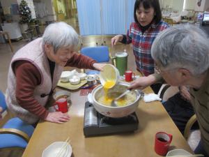 利用者も卵を割ったり火加減を見たり手伝ってくれましたよ。