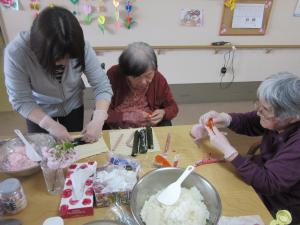 きゅうりを切ったり、酢飯を作ったり、皆でワイワイ作りました。