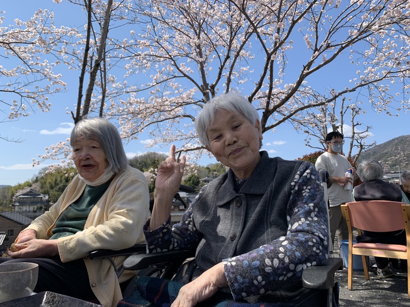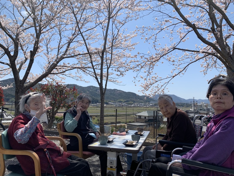 春のそよ風を感じながら、みんなで甘酒とお茶菓子をいただき、