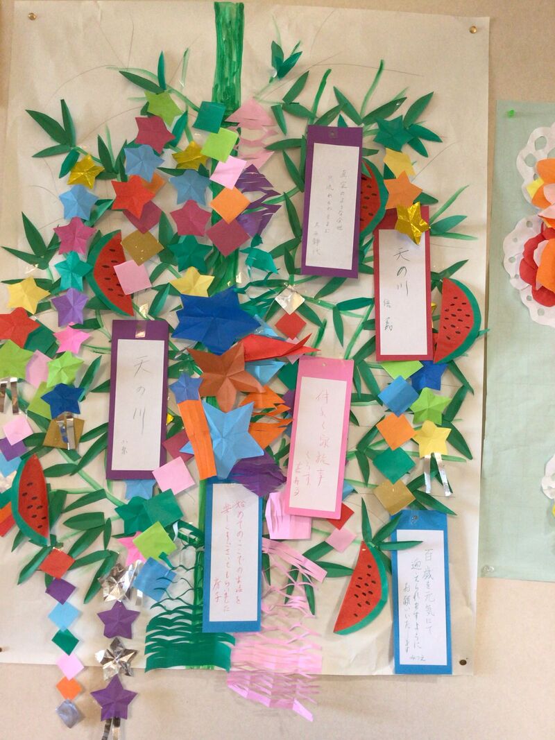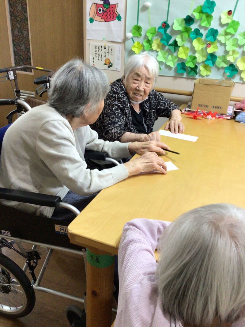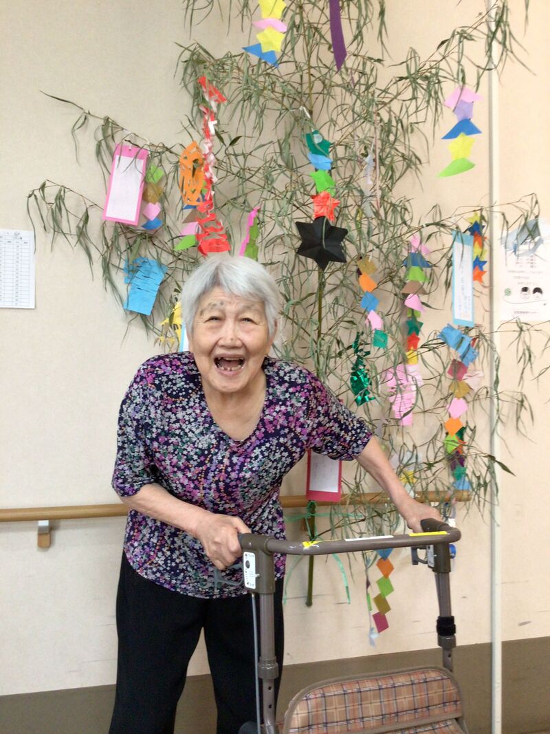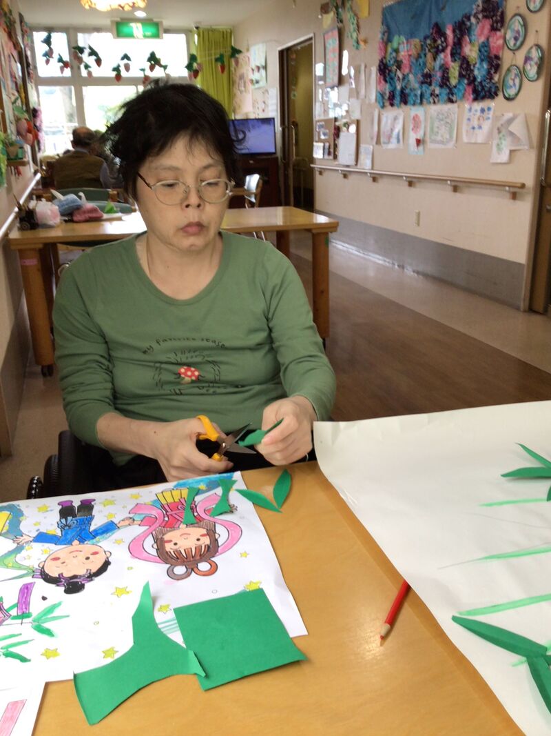 先日七夕飾りを作成し短冊へ願い事を書きました。利用者様同士で「願い事何ににする?」等会話が盛り上がりました。