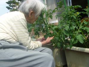 さすがはベテランの利用者様、上手にはさみを使い、脇芽取りをおこなってくださいました。