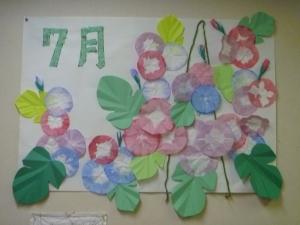 ピーチチームでは6月下旬に朝顔の貼り絵を作りました。