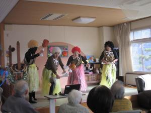 ハンドベルに続き、原始人に扮した職員による「ジンギスカン踊り」が披露されました。