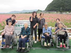 雨が降るかと思いましたが、外に出て、満開のポピーを間近で鑑賞することができ「きれいじゃなぁ」と喜んでいただけました。