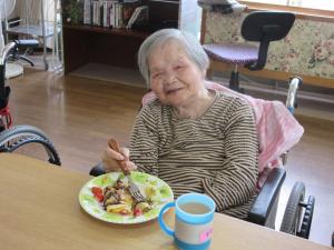 今日は職員による手作りおやつ 餡と果物を包んだクレープです☆