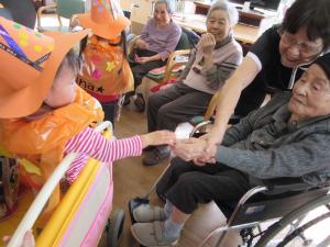 今日はハロウィーンとのことで、ほのぼの保育園の園児が「お菓子ちょうだい」と来ました。