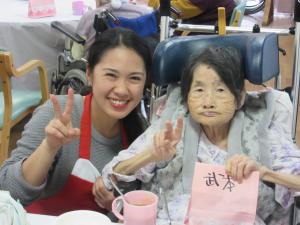 職員皆がサンタの衣装を着て、クリスマスの音楽が流れている