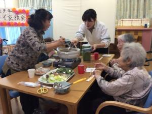 ご利用者・ご家族・職員で鍋を囲み、話に花が咲きました。