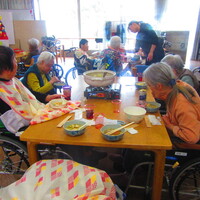 昼食時、マスカットチームで寄せ鍋パーティをしました。
