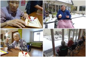 中庭に見に行かれたり、ユニットで「冷たい」と言われながら雪だるまや雪うさぎを作りました!!