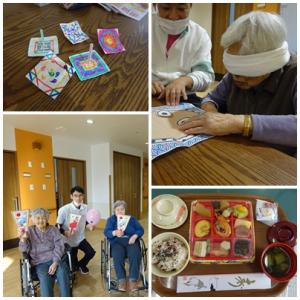 皆さんとコマや羽子板を作った遊んだり、福笑いを楽しみました☆