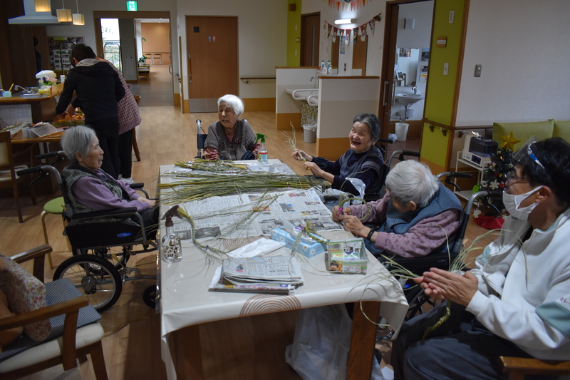 結いのさと愛家里では「しめ縄づくり」や「もちつき」などを行い、お正月の準備が整いました。