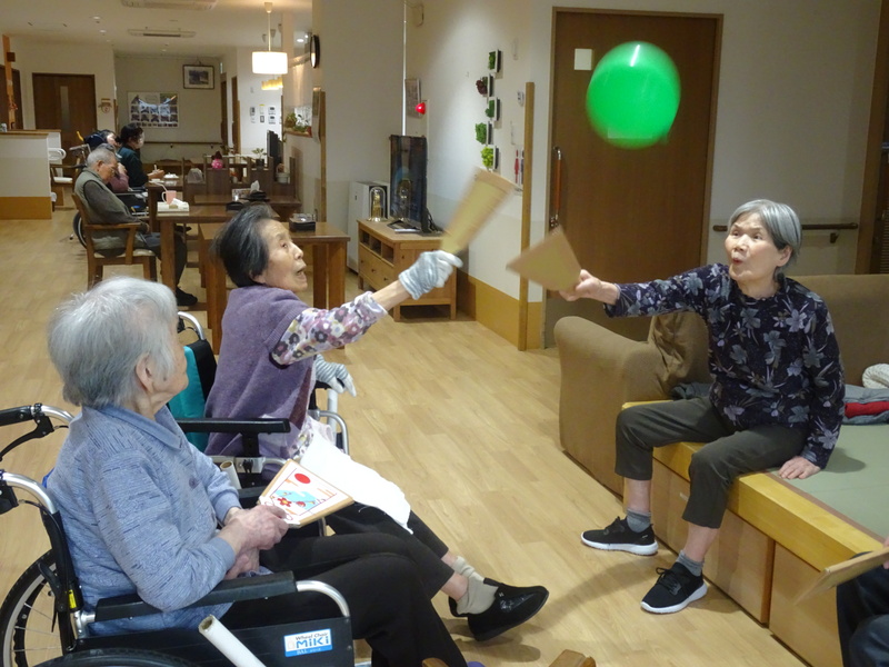 結いのさとでは新年早々”白熱した?”羽根つきが繰り広げられていました。