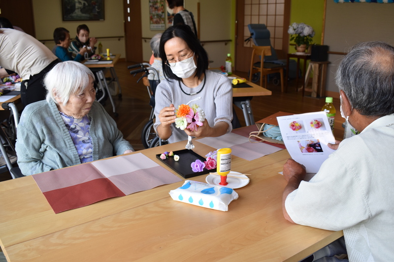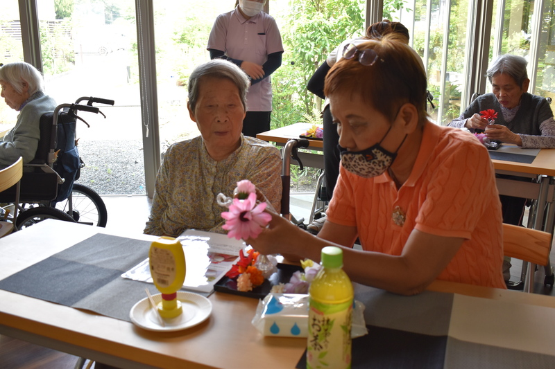 お母様・お父様へ日頃の感謝の気持ちを込めて、「ひだまりユニットはフラワーボール」、「こもれびユニットは手作り時計」をご家族様と一緒に作り、プレゼントさせていただきました。