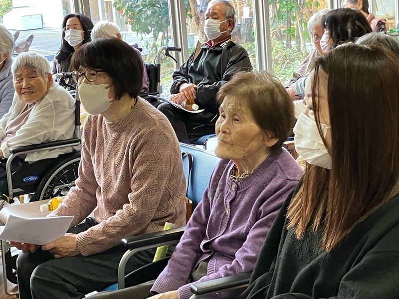 皆さま手拍子をしながら一緒に歌い、クリスマスソングでは鈴を鳴らし楽しまれました。